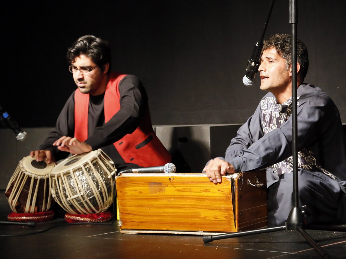 Die musikalische Reise führte weiter nach Afghanistan und Kuba. Ermöglicht wurde dies durch den Besuch einer Deutschklasse von Flüchtlingen aus Hassfurt mit ihrer Lehrerin Frau Monika Hofmann. Saeid und Achmad brachten mit Tablas und Harmonium fernöstliche Klänge nach Stappenbach. Guillermo ließ durch sein kubanisches Temperament die Temperatur in der übervollen Turnhalle nochmals ansteigen, tänzerisch unterstützte ihn Suleidi.
