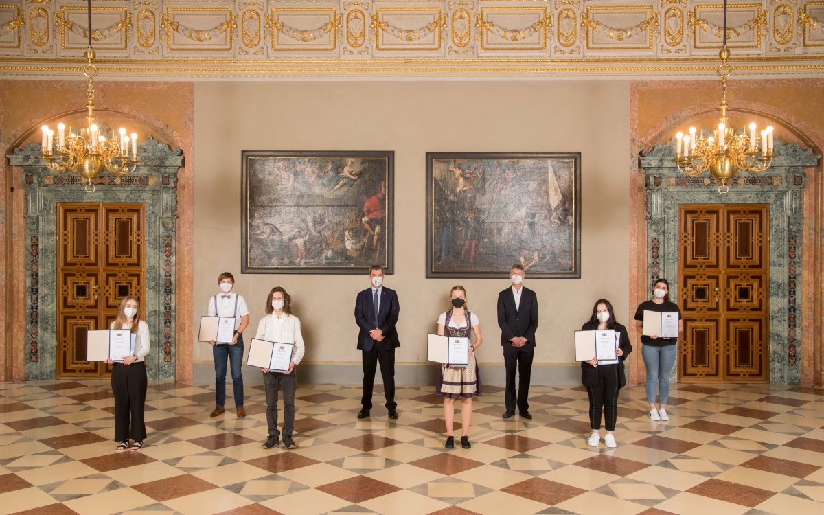 Kristina Baum wurde im November 2020 zur zweiten Bezirksschülersprecherin der oberfränkischen Förderschulen gewählt. In diesem Amt engagierte sie sich nicht nur in der Don-Bosco-Schule in Stappenbach in der Schülermitverantwortung während der Corona-Pandemie. Darüber hinaus bereicherte Kristina die Arbeit des Bezi-Rats, einem Gremium der überregionalen Schülermitverantwortung der Förderschulen in Oberfranken, mit ihren Beiträgen und konnte anderen Schülersprecherinnen und Schülersprechern gute Tipps und Vorschläge für die SMV-Arbeit einbringen. Für dieses Engagement wurde sie am 28.07.2021 in München von Herrn Ministerpräsident Dr. Markus Söder und Kultusminister Prof. Dr. Michael Piazolo gemeinsam mit zahlreichen ehrenamtlichen Schulabsolventinnen und -absolventen aus allen Teilen Bayerns und allen Schularten geehrt. Nach dreistündiger Anreise erlebten Kristina und ihr Betreuungslehrer eine festliche Feierstunde im ehrwürdigen Kaisersaal der Residenz. Herr Dr. Söder und Herr Prof. Dr. Piazolo fanden ehrende Worte für die Schülerinnen und Schüler. Zum Schluss wurde das Engagement aller Ehrenamtlicher mit einer eindrucksvollen Urkunde, einem Büchergutschein und einem umfassenden Buch über die Kultur und Vielfalt des Freistaats Bayern belohnt.