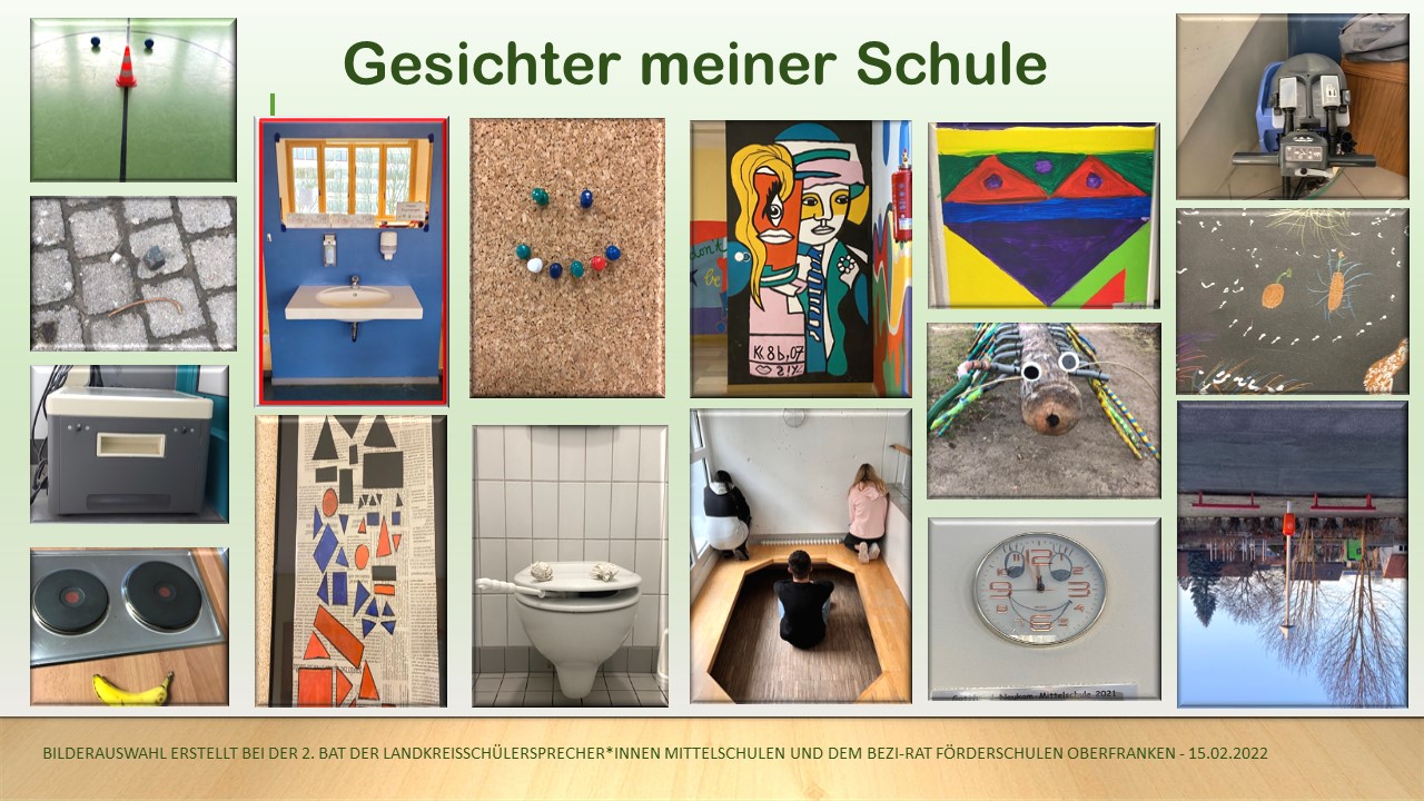 Die 2. Bezirksaussprachetagung der Landkreisschülersprecherinnen und -sprecher der Mittelschulen und des Bezi-Rates der Förderschulen am 15.02.2022 stand unter dem Motto "Gesichter meiner Schule".