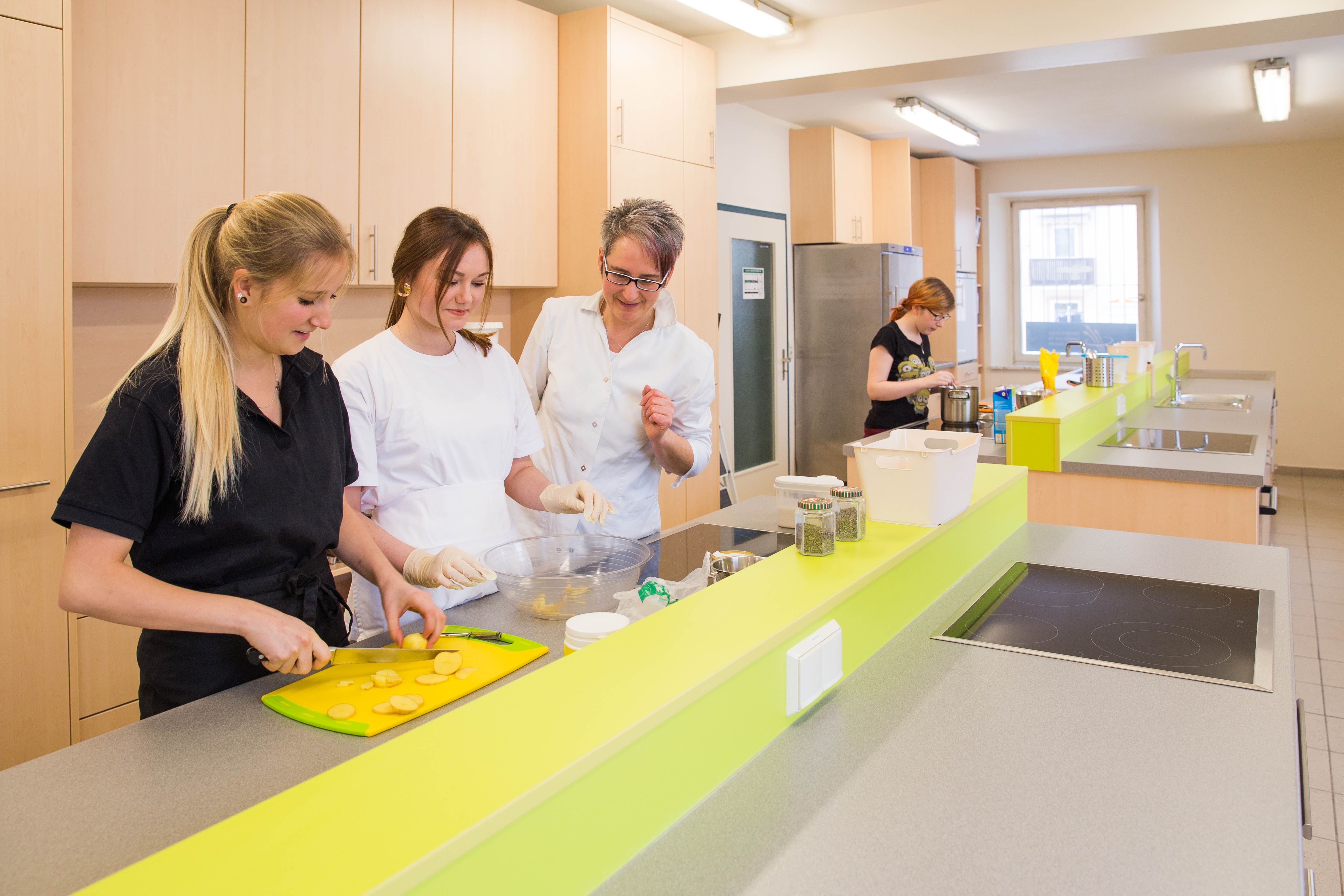 Wir wollen mit diesem Slogan darauf hinweisen, welche immense präventive Bedeutung die Ernährung für unsere Gesundheit hat. Gleichzeitig wollen wir jedoch auch den praktischen Aspekt des Kochens hervorheben. Eine gesunde Ernährung kann nur praktiziert und patientengerecht vermittelt werden, wenn grundlegende Kenntnisse der Küchentechnik und Lebensmittelverarbeitung vorhanden sind. Darauf legen wir an unserer Schule großen Wert.